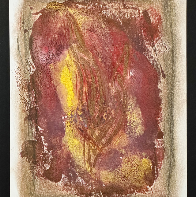 Mehrfarbiges Mixed Media Kunstwerk (Linoldruck, Pastellkreide, Tinte) von Michael Weyl
